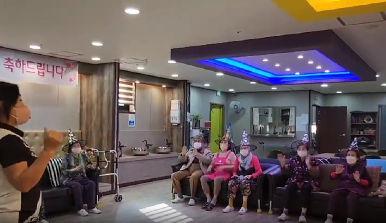오늘은 음악수업이 있는 날입니다. 노래를 통해 어르신들의 인지능력과 정서적 안정을 돕고