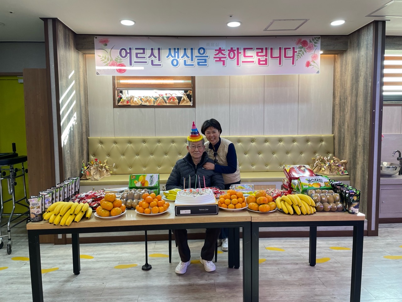 아울러 오늘 오후에는 000 어르신 생신 축하 잔치를 했습니다.