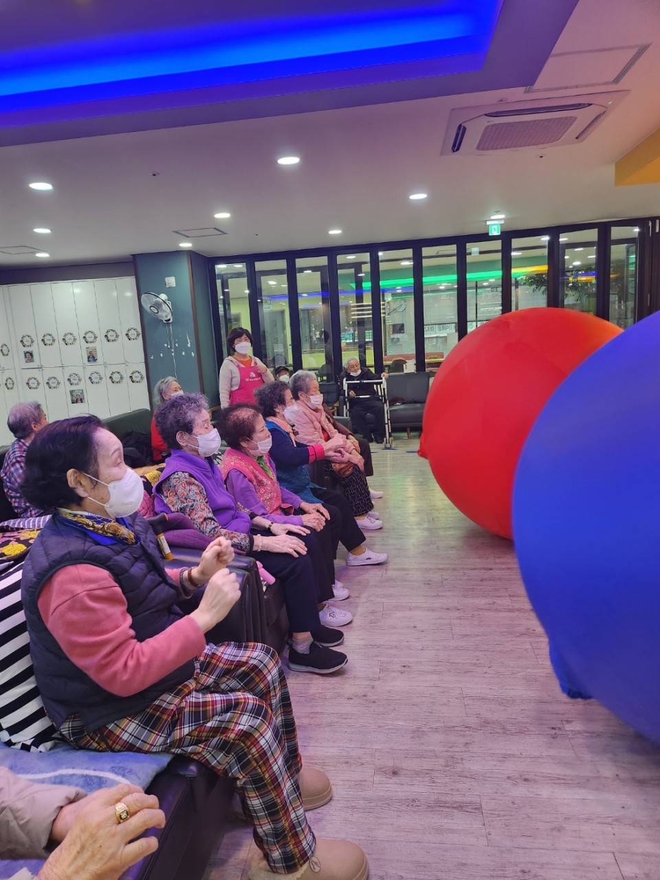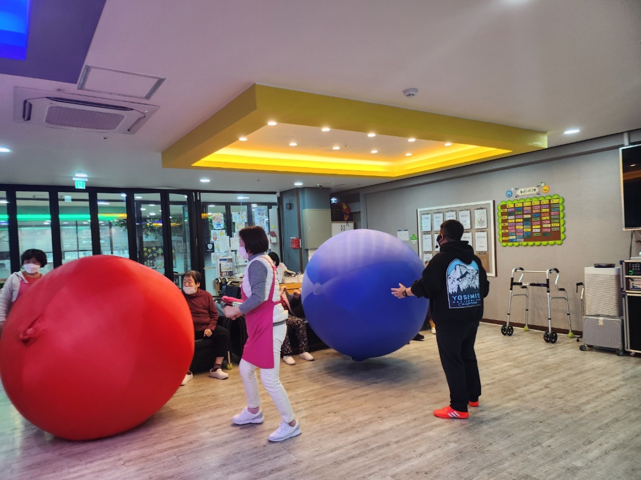 눈을 굴려 눈사람을 만들듯이, 공을 굴리며 힘껏 뻥뻥 차기도 했습니다. 모처럼 활동적인 어르신들의 모습이 보기 좋았습니다~^^