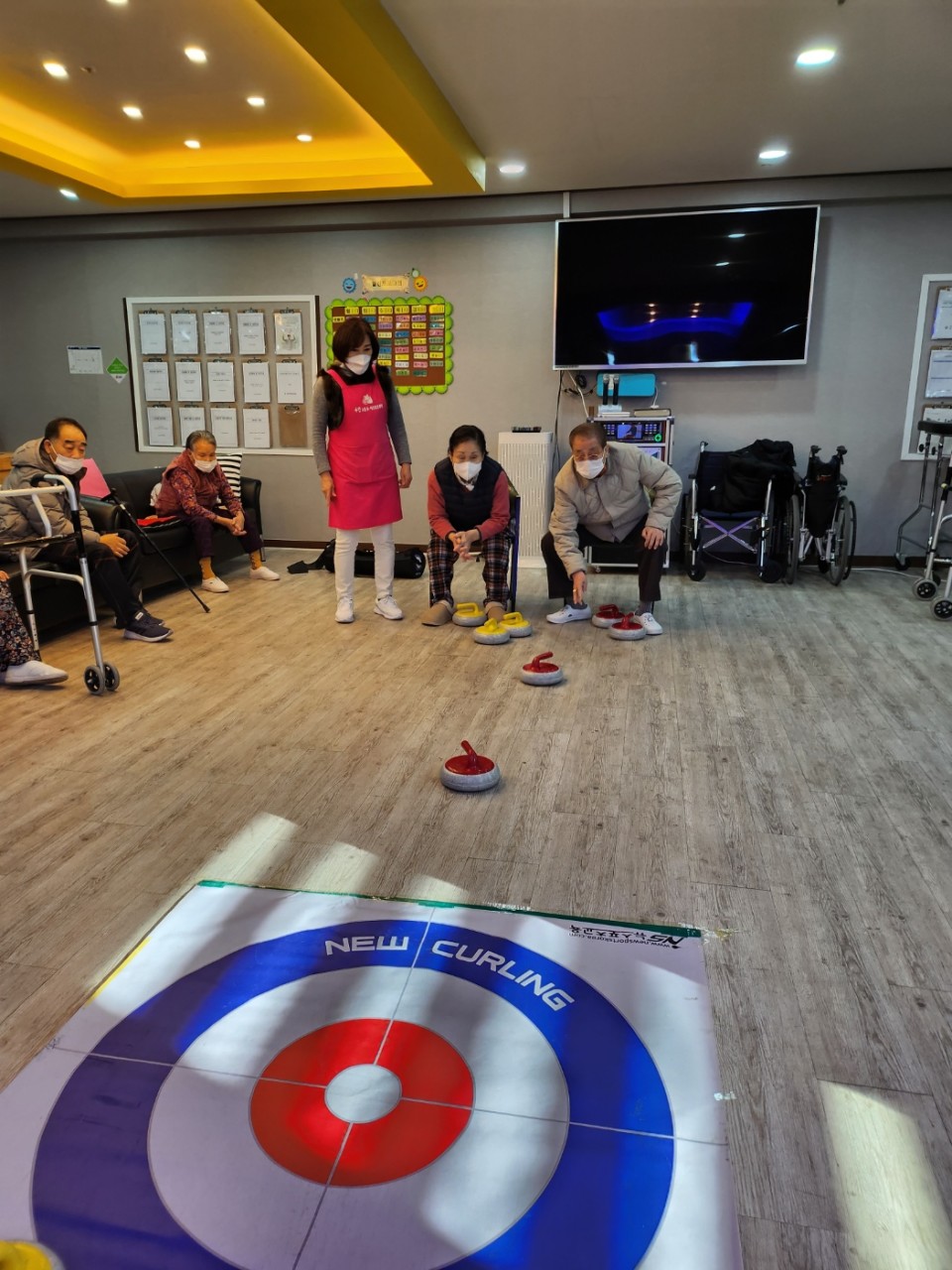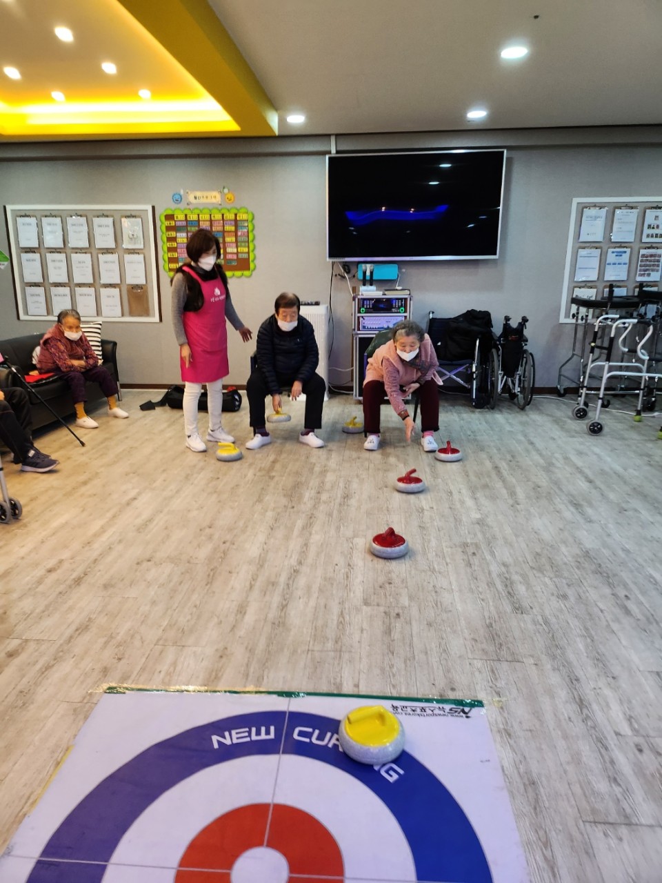 어제는 어르신들이 신체활동으로 '컬링'을 했습니다.